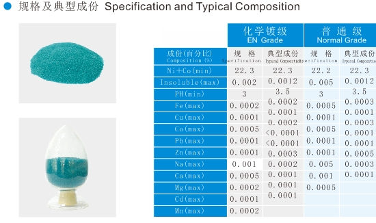 作 用:主要用于高端電鍍,電子電鍍,化學(xué)鍍,高端鋰電池三元材料,高端鎳氫電池