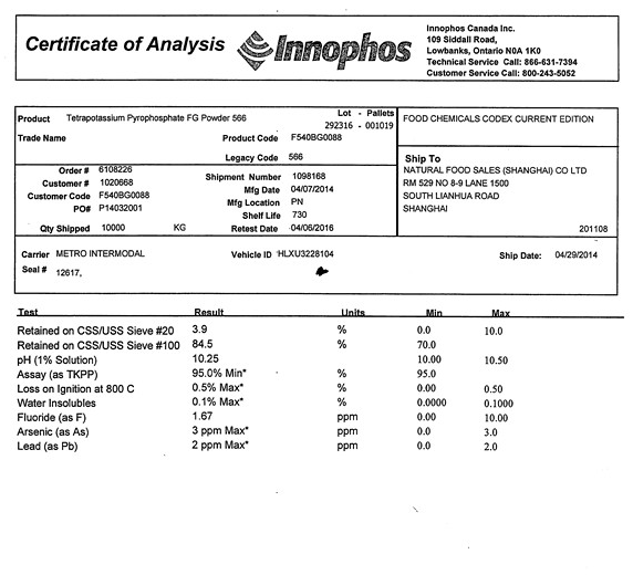 品 牌:美國穎樂福食品級焦磷酸鉀