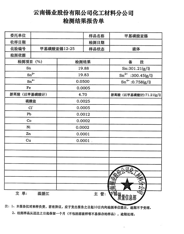 品 牌:甲基磺酸亞錫(云南)